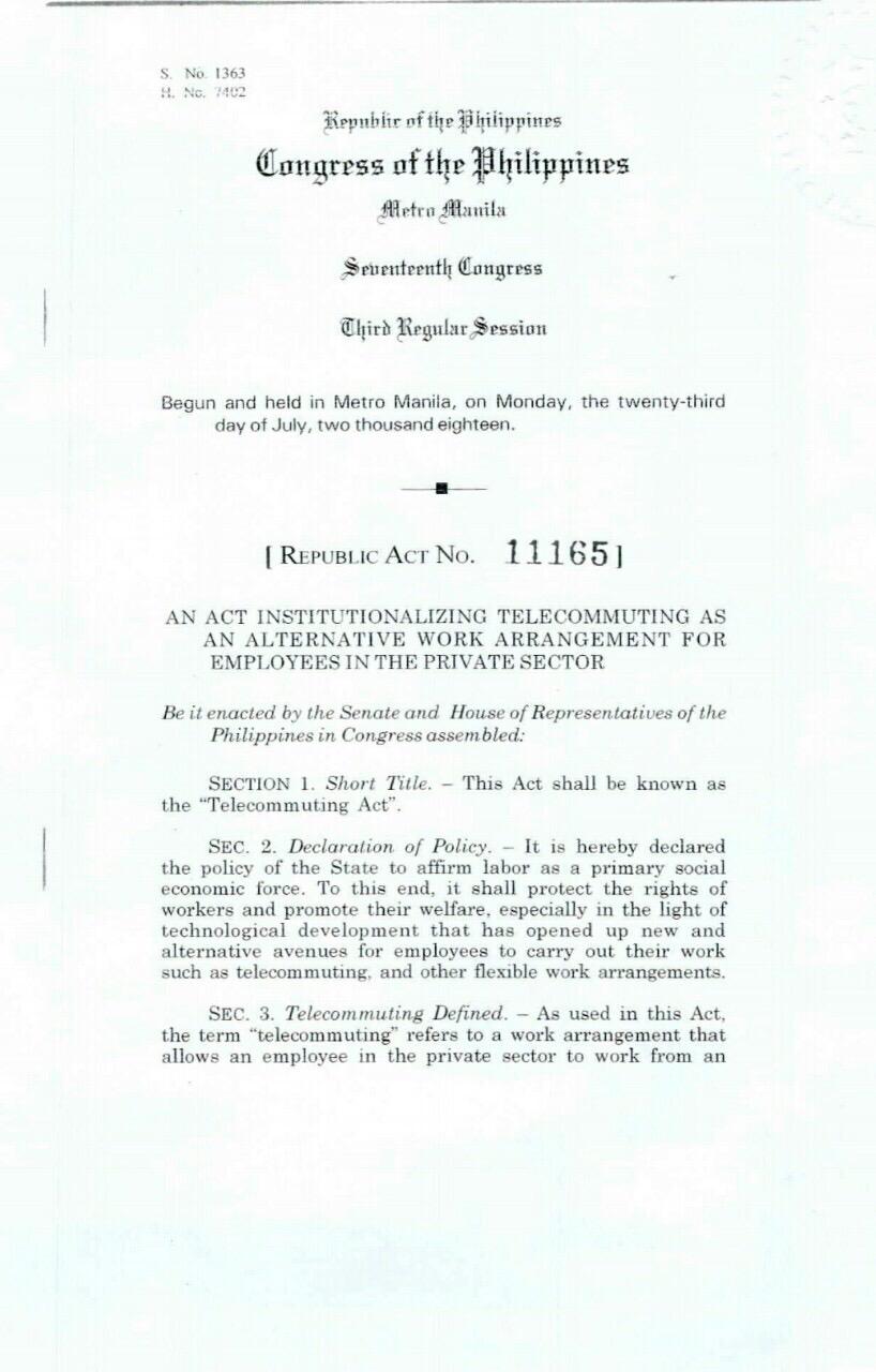 ra 11165 or the telecommuting act