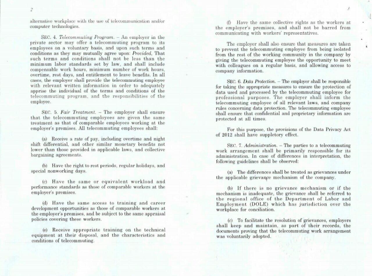 Implementation of RA 11165 is not mandatory, It shall be a voluntary arrangement between the employer and employee. But, it ensures that those telecommuting will be treated the same as their counterparts working on-site.